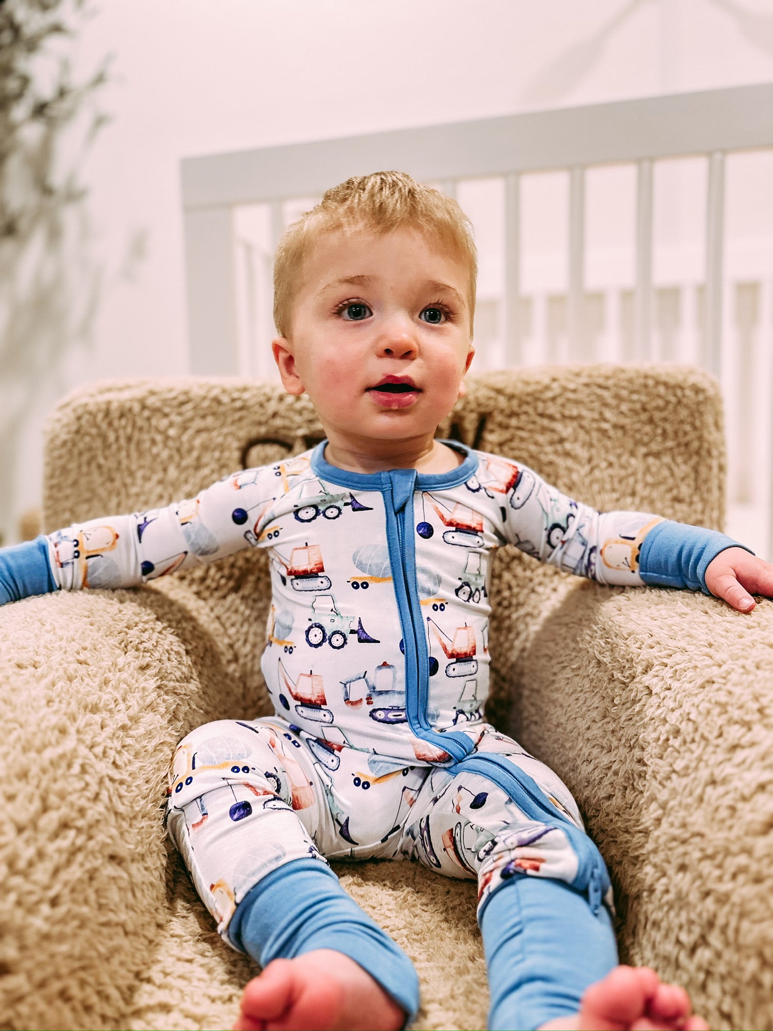 "Get ready to hit the road in style with our Construction Trucks Bamboo Sleeper PJs! Made from eco-friendly and super soft bamboo material, these PJs feature playful construction truck designs that will delight your little one. Say goodbye to boring bedtime outfits and hello to fun and sustainable sleepwear!"